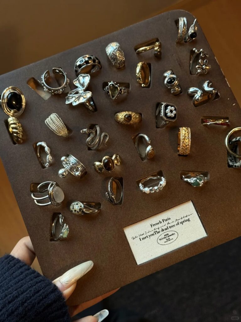 We offer a wide range of statement rings, earrings, necklaces, and layered accessories—each piece thoughtfully designed to be mixed, matched, and worn your way. From sculptural silhouettes to retro details, our designs are made to stand out and start conversations.